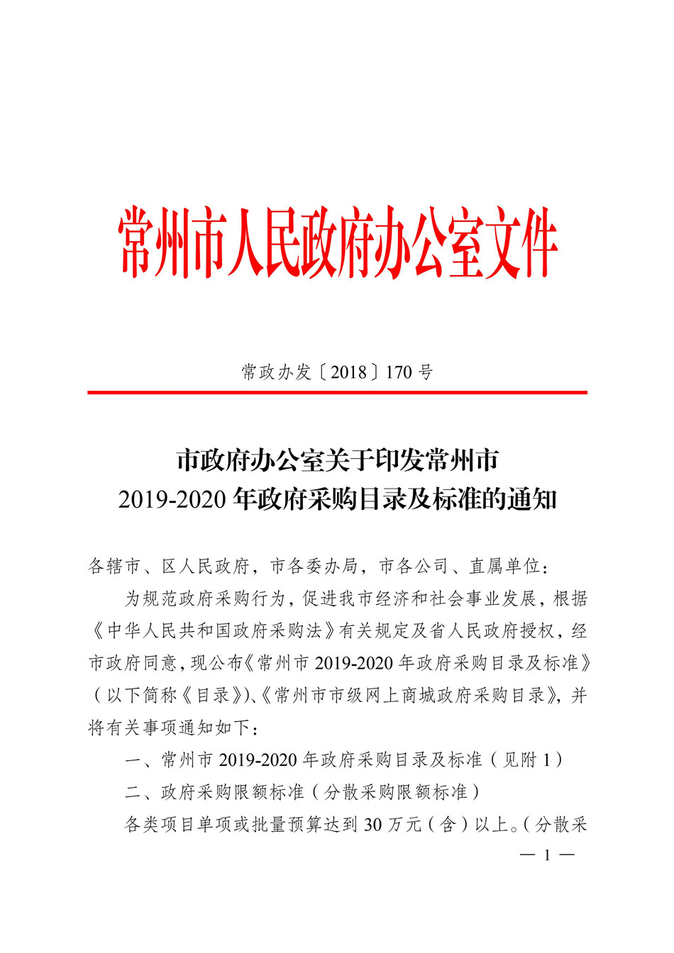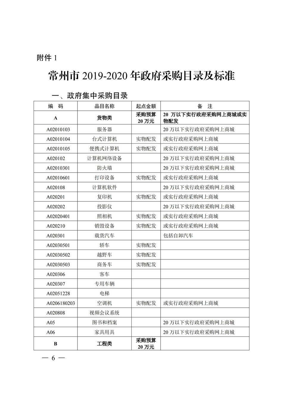 19-20常州市政府采購目錄